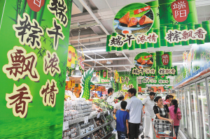 | ↑端午节将至,海口各大超市粽子上架,各种礼盒粽子开始进入市场。