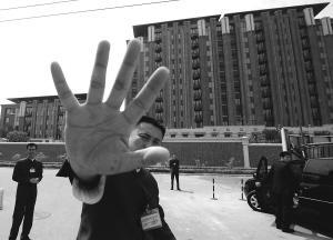| 北京钓鱼台7号院的工作人员拒绝记者拍摄楼盘(5月26日摄)。 新华社发 |