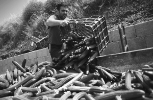 | 西班牙农民倾倒滞销的黄瓜。 新华社发 |