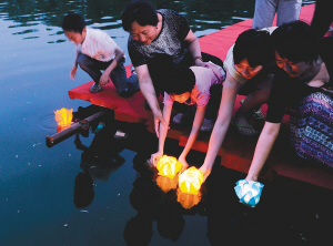 6月4日,游客在北京龙潭公园参加端午节“祈福纳吉”放河灯活动。 “千载悠悠,成习俗,天中端午。”从古至今,端午节承载了人们对生活的各种情感:思念、感恩、憧憬、祈愿。2011年的端午节,从节前一周开始就逐渐成为网络热点话题,粽香袅袅间、悠悠假期里,网民们在追问:端午是“假”还是“节”?本是纪念诗人的节日为何只有商味而难觅诗意?粽衣女体盛、模仿屈原投江蹦极,传统节日的风骨为何媚俗化?申遗成功后,端午节保护的出路又在哪里? 新华社记者罗晓光摄