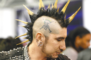 6月4日,在哥伦比亚首都波哥大,一名文身爱好者在国际文身大会上展示头部的纹身。 新华社/路透