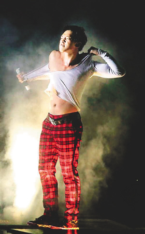 本报讯 日前,韩国当红偶像明星Rain的世界巡回环保演唱会在广州举行。Rain将世界巡回演唱会的最后一站献给广州,也是他入伍服役前的“告别狂欢派对”。当晚,Rain不仅献上百般舞技,更现场大玩湿身秀,兴奋到极点时,Rain甚至还撕开衣衫大秀胸肌,令现场歌迷沸腾。