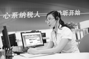 | 12366纳税服务热线工作人员在向纳税人宣传税收政策。(琼景 摄) |