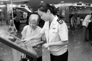 在办税服务厅设置电子触摸屏,方便纳税人查阅办税知识。(吴清春 摄)