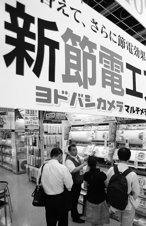 迎接夏季用电高峰 日本推广节能家电 ← 6月9日,在东京秋叶原的一家连锁百货店,顾客在选购空调。 由于日本福岛第一核电站事故以及后续效应所导致的日本全国大范围的电力供应紧张,日本厂商和家电卖场积极推广节能空调、电风扇和LED灯等。 新华社发
