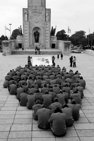 阿根廷 6月9日,志愿者在阿根廷中部城市罗萨里奥的国旗广场摆出一个血滴的造型,鼓励民众积极献血,迎接即将到来的国际献血日(6月14日)。新华社/美洲通讯社