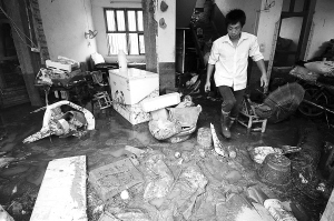 6月10日,修水县白岭镇温泉村一房屋遭洪水冲击后一片狼藉。 6月10日,江西修水县出现罕见大暴雨,造成修水县28万人受灾,18个乡镇交通中断,5个乡镇供电中断,倒塌房屋1152间,10多万亩农作物受灾,已有4人死亡,包括一名儿童。加上紧急解救的被困人员,修水县已经紧急转移2.7万多人。 目前,修水县境内河流水头非常大,各地仍在进行紧张的抢险,全力转移群众,最大限度减少人员伤亡。由于山体水分饱和,修水县紧急安排人员进行逐一巡查,预防山体滑坡等次生灾害的发生。 新华社记者周科摄