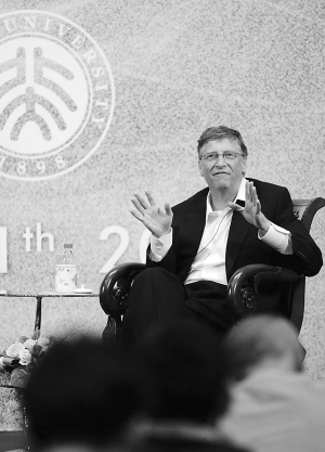 11日上午,“盖茨与北大学生面对面”活动在北京大学英杰交流中心举行。在发表简短的演讲后,比尔·盖茨与同学们的交流话题始终聚焦在成功与责任、创新与慈善。