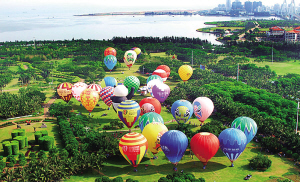| 6月12日上午,30只热气球在海口万绿园徐徐升空。