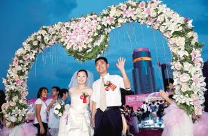 在“华彩万千耀椰城”大型烟花歌舞表演之后,晚会徐徐落下帷幕。而133对爱侣则乘车参加喷火巡游表演,经滨海大道、长堤路等城市主要街道抵达海南大学北门,在流光溢彩的海口夜色中品味海韵椰风。