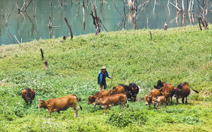 王朝兴养牛多年,对小黄牛的禀性如数家珍:“把小黄牛叫做野黄牛,是因为我们都不会把牛群圈养在家里,每天都会把他们放到山上去,让他们自由自在地过活。我们这的牛很挑嘴的,只吃阳光下有露水的草和叶子,只喝山里流动的泉水,池塘里的水它们是不喝的。”