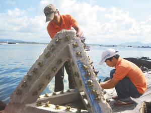 但这种方法对于非常平坦的天然礁石或海底,就不是很好。经过反复探索、实践,现在,热海所利用水泥浇铸成金字塔的形状,作为移植的珊瑚基座,每个基座有500多公斤重,并有特殊的固定海底的结构,基本上不受破坏性波浪的影响,能帮助移植的珊瑚在海底“站”稳脚跟。陈宏说,利用这种水泥基座的中型人工珊瑚礁,具有“稳定抗风浪、透水性强、生长面积大”的特点,“水泥基座在任何地方都可以浇铸,取材方便,对环境的影响也小。该方法含有多项专有技术,具有我国特色的知识产权。”