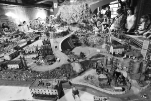 6月12日,在俄罗斯的圣彼得堡,人们在微缩“俄罗斯”模型展上欣赏乌拉尔山煤矿的模型。这个面积800平米的展出利用模型展现俄罗斯最具有象征意义的景象。 新华社/路透