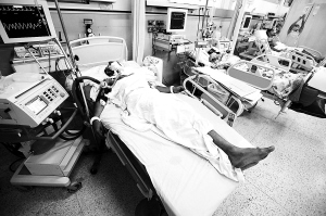 | 6月12日,反对派士兵在利比亚班加西的一家医院接受治疗。