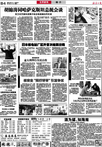 海南日报 世界新闻 012 2011-06-141 2011年06月14日 星期二