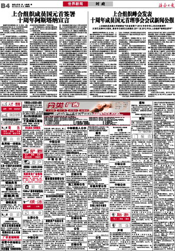 上合组织峰会发表十周年成员国元首理事会会议新闻公报