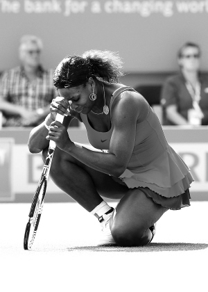 | 6月16日,小威廉姆斯以1:2不敌兹沃娜列娃,无缘伊斯特本赛八强。图为小威在比赛中。 新华社发 |