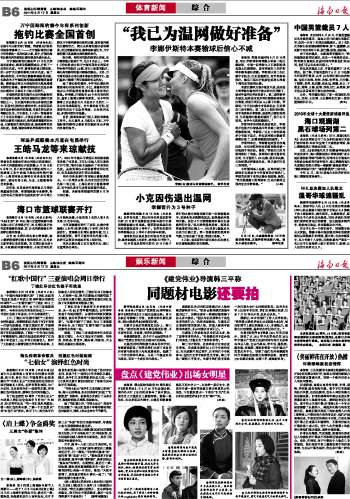 海南日报 体育新闻/娱乐新闻 014 2011-06-171 2011年06月17日 星期五