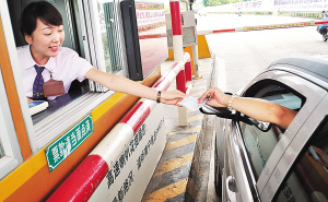 6月20日起,交通运输部、国家发改委等将在全国范围内开展为期一年的收费公路专项清理工作。图为广西桂海高速公路收费站工作人员在向过往车辆的司机收取相关费用。 新华社发