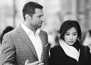 | 休·杰克曼(左)与李冰冰在《雪花与秘扇》中 |