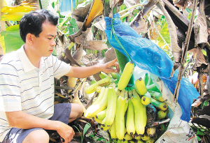 记者调查得知,不仅凤凰镇的蕉农遇到这种情况,育才镇、吉阳镇也是这种情况。三亚市农业局提供的数据,2011年,全市香蕉预计收获面积2.5万亩,产量7万多吨。