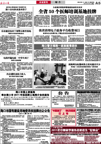 海南日报 本省新闻综合 005 2011-06-241 2011年06月24日 星期五