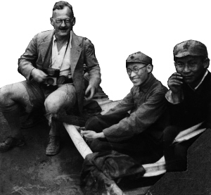 | 1937年初,美国著名记者斯诺(左)采访陕甘边区保安处长周兴(中),布鲁陪同并担任英语翻译。 |
