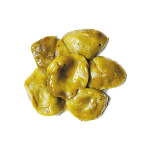 轻轻包好后,再揉搓一下成圆形状,蒸笼里垫上柚子叶,把做好的艾糍粑外表抹上一层花生油,然后轻置于柚子叶上,置炉上旺火蒸20分钟即可。