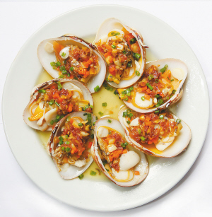 临高的香煎鳗鱼也很独特,选择10斤重左右的鳗鱼,切断改刀,漂水洗血,沥干水分后,抹少量盐,放入油锅慢煎,到两面微黄时起锅,倒上临高特制的海鲜酱。这样的鳗鱼外焦里嫩,口感好,味道足。