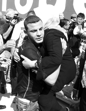 6月26日,在利比亚首都的黎波里的港口,人们相互拥抱。