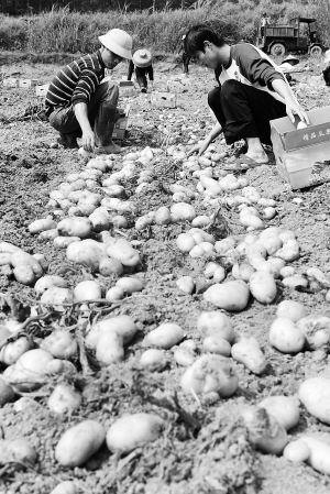 | 今年3月,海南儋州国家科技农业园区,工人们正在采收“荷兰7号”土豆。 |