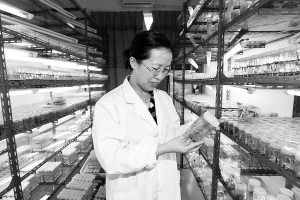 | 6月22日,中国热带农业科学院一位科研人员正在观察新品马铃薯组培苗发芽状况。 本栏照片均由本报记者苏晓杰摄 |