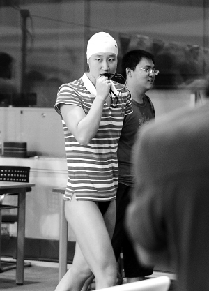 | 6月28日,中国游泳队在北京训练,备战2011年上海游泳世锦赛。 图为刘子歌来到训练馆准备训练。 新华社发 |