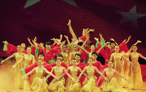 “真理之歌”颂党恩 6月28日下午,海口经济学院庆祝中国共产党成立90周年暨先进典型表彰大会隆重举行。会上表彰了一批先进党支部、优秀党员及党务工作者。表彰大会后举行了大型诗舞乐《真理之歌》。这是学生们的精彩表演。 本报记者 张杰 摄