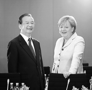 | 6月28日,国务院总理温家宝与德国总理默克尔在柏林总理府共同主持首轮中德政府磋商。 新华社记者 姚大伟 摄 |