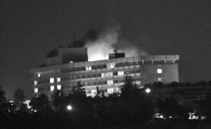 6月29日,在阿富汗首都喀布尔,洲际酒店遇袭后起火。阿富汗当地电视台28日晚报道,首都喀布尔洲际酒店当晚遭遇袭击,并引发激烈枪战,已造成21人死亡。 新华社/法新