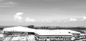 6月28日,海口市西海岸,椰树婆娑,大海辽阔。就在这样的布景中,被誉为“会展天堂”的海南国际会展中心巍然崛起在海岸边,像大鹏展翅欲飞,成为海口一景(见上图,本报记者古月摄)。