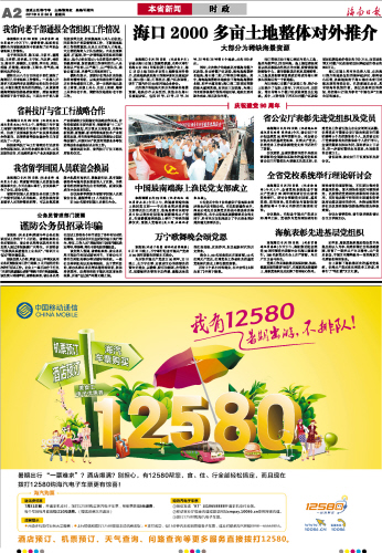 海南日报 本省新闻 002 2011-06-301 2011年06月30日 星期四