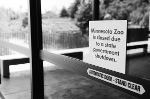 7月1日,美国明尼苏达州动物园的大门上贴有关闭的通知。 由于美国民主党与共和党未能就始于今年7月1日的新财年预算达成一致,美国明尼苏达州州政府部分部门1日起被迫关闭。除公共安全、医疗服务等一些关键部门外,明尼苏达州州立公园、高速公路休息区等联邦机构和设施1日凌晨开始暂时关闭。 新华社/法新