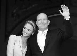 7月1日,刚刚结婚的摩纳哥亲王阿尔贝二世在王宫阳台上与新娘查伦·维特施托克合影。当日,摩纳哥亲王阿尔贝二世举行世俗婚礼仪式,迎娶南非“美人鱼”查伦·维特施托克。 新华社/路透