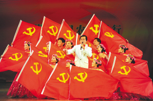 7月1日晚,农行海南省分行在海口人大会堂举办文艺晚会,庆祝中国共产党成立90周年暨中国农业银行成立60周年,该行系统各市县分支行共选送了22个节目参加演出。图为演出场面。 特约记者 蒙钟德 摄