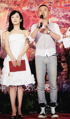 3日,电视剧《革命人永远是年轻》在京举行播映典礼,主演聂远(右)、陶飞霏在典礼上。 新华社发