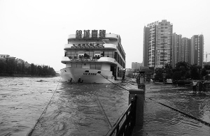 7月3日19时25分左右,成都市锦江下游华阳河段河水暴涨。当日下午起,成都市区大雨滂沱,最大降水出现在成都市区的一自动站采集点,5小时内降雨量达到215.8毫米。未来3天,四川还将遭遇强降雨天气过程。 新华社记者 陈燮 摄