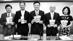 7月5日,香港特区政府财经事务及库务局局长陈家强(右二)、香港金融管理局副总裁余伟文(左二)等在新闻发布会上。 当日,香港特区政府财经事务及库务局举行新闻发布会,宣布即将推出不多于100亿港元的与通胀挂钩债券,债券年期为3年,债券持有人将每6个月获发一次与香港通胀挂钩的利息,息率不会少于1厘。债券认购期由本月11日起至19日,本月28日发行,29日在香港联交所上市。 新华社发