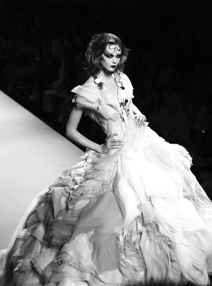 巴黎时装周: 迪奥上演 “星月童话” 7月4日,模特在巴黎高级定制时装周上展示克里斯汀-迪奥2011/2012秋冬新品,上演“星月童话”。 当日,巴黎2011/2012秋冬高级定制时装周拉开帷幕。 新华社记者 高静 摄