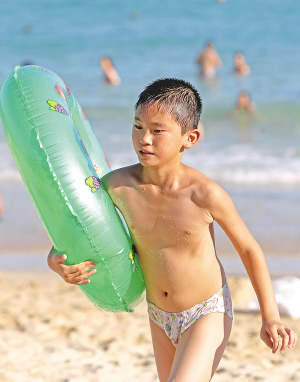 | 随着中考、高考的结束,来自全国各地的“家庭亲子游”成为三亚暑期游的主力军。7月5日,大东海景区,小游客尽情地玩耍。