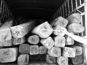 | 查获的部分被盗伐珍贵木材。 本报记者 范南虹 摄