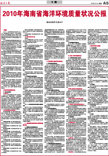 2010年海南省海洋环境质量状况公报
