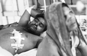 | 7月7日,印度火车汽车相撞事故中的伤者在印度北方邦埃达的一所地区医院内接受治疗。