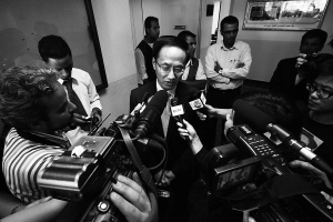 ←7月6日,中国外交部亚非司司长陈晓东会见利比亚“全国过渡委员会”执行局副主席伊萨维后回答记者提问。 陈晓东当天分别会见了利比亚“全国过渡委员会”执行局副主席伊萨维和执行局外事办公室负责人萨拉赫。陈晓东在会见中表示,持续4个多月的利比亚危机使利比亚人民饱受战乱之苦,加剧地区局势动荡,中方对此深感忧虑,认为目前状况不能再持续下去,要尽快找到政治解决办法。 新华社发